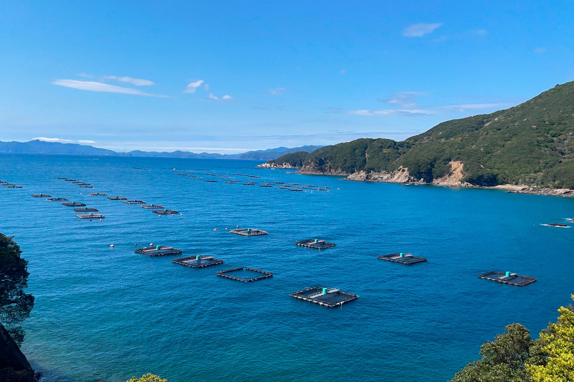 温暖な黒潮の分流が流れ込む環境で育てています。